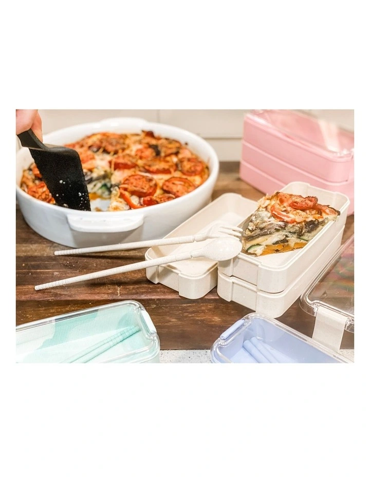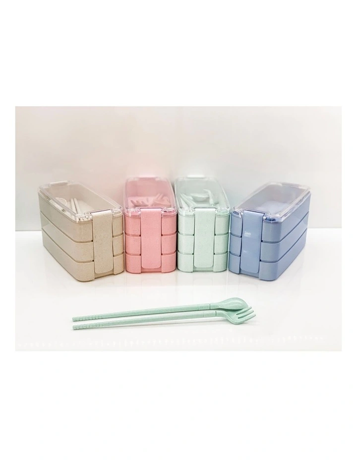 Easy, Lightweight and Beautifully presented Three tiered Eco friendly Bento Boxes. Made from Wheat straw. Wheat straw plastic is the latest eco friendly material and is a smart, environmentally friendly alternative to plastic. It is a premium food grade material and is completely BPA free and has FDA approval.Each compartment is large enough to accomodate enough food from children to AdultIncludes fork and spoon or chopsticks.