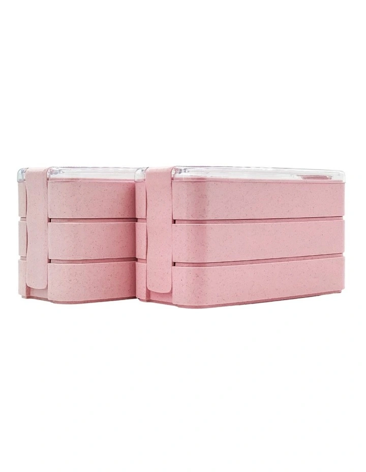 Easy, Lightweight and Beautifully presented 2 x Three tiered Eco friendly Bento Boxes. Made from Wheat straw. Wheat straw plastic is the latest eco friendly material and is a smart, environmentally friendly alternative to plastic. It is a premium food grade material and is completely BPA free and has FDA approval.Each compartment is large enough to accomodate enough food from children to AdultIncludes fork and spoon or chopsticks.