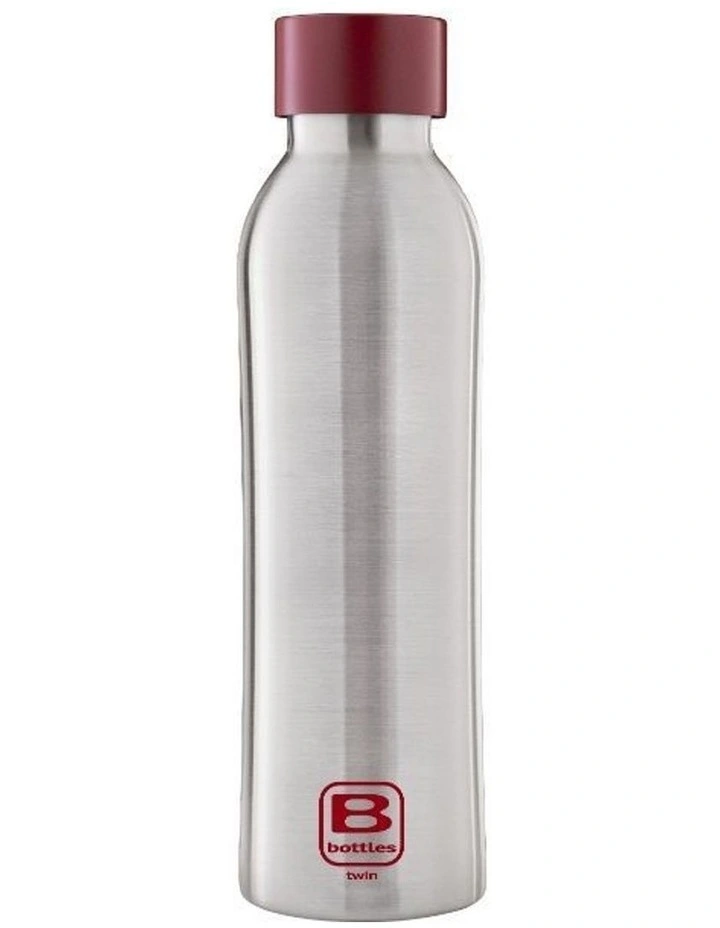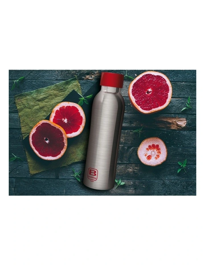 The Stainless Steel Brushed B Bottle, comes with a brushed lid and an ergonomic, tapered shape, designed to facilitate grip.