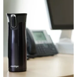Lid is spill and leak-proof, featuring an AUTOSPOUT lid, simply press to sip and release to seal to avoid spillage