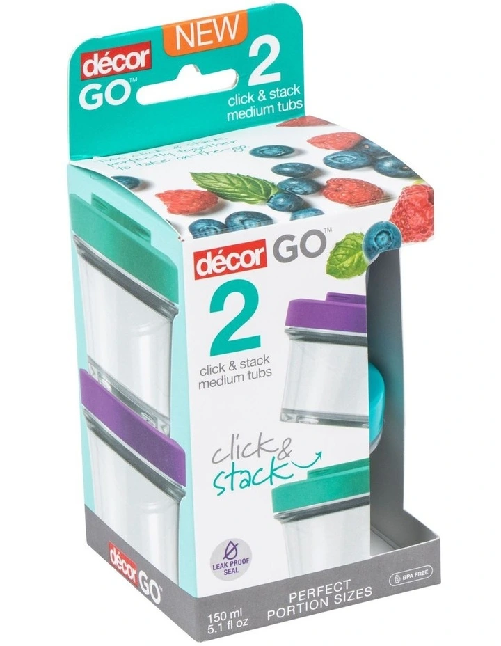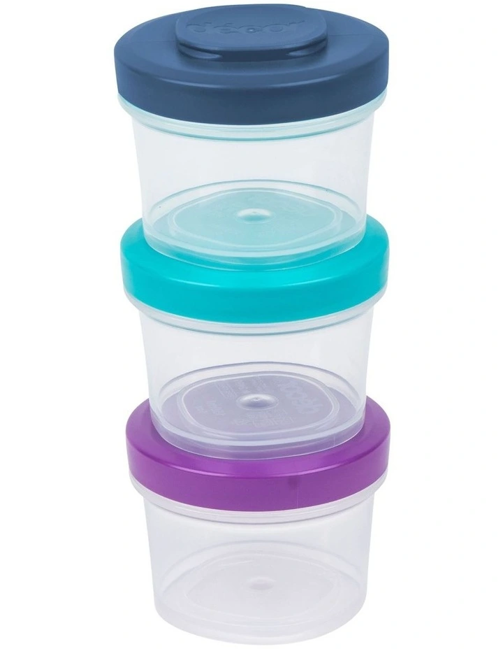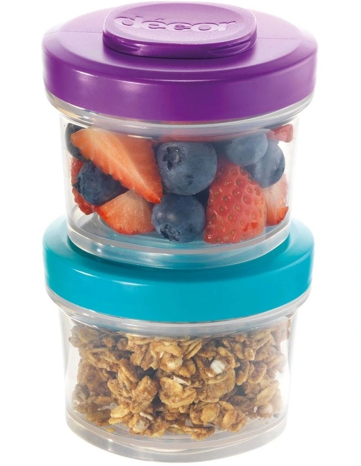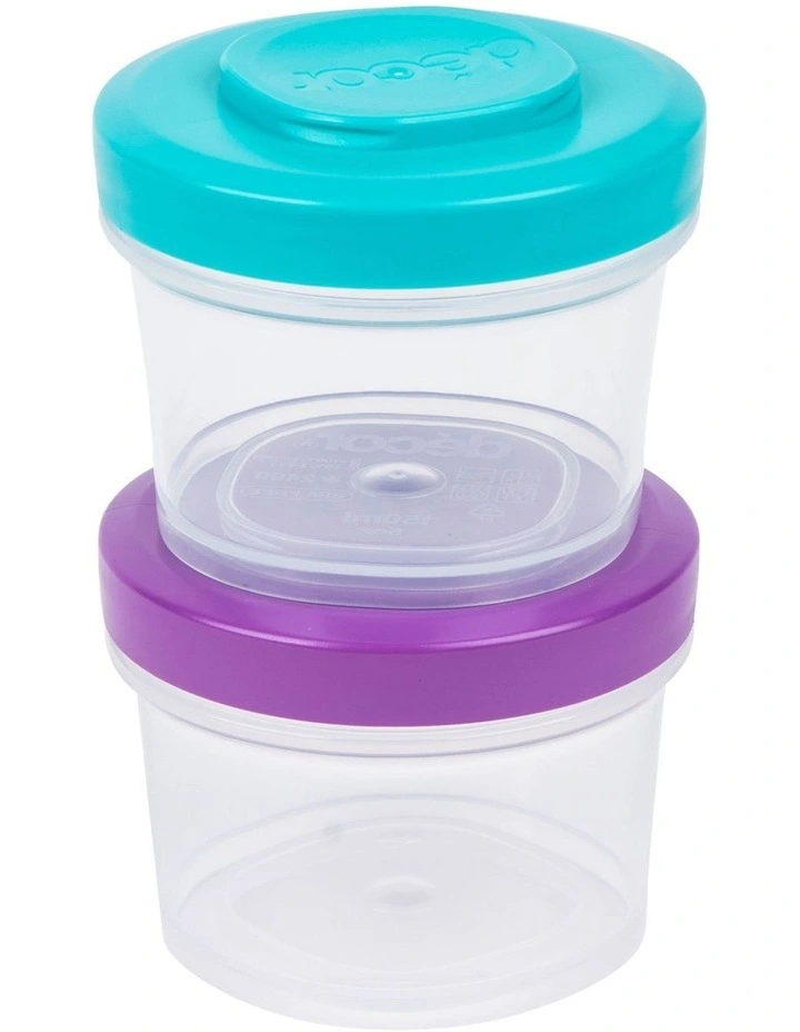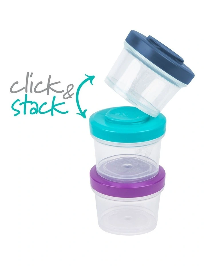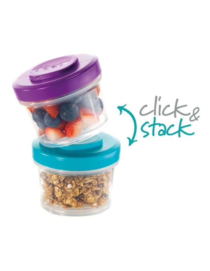 Featuring a clever click and stack design, these containers click and stack together in multiple configurations to create your own customised lunch and snack system! Perfect portion size for dips, nuts, crackers, fruit, yoghurt, sauce and more.