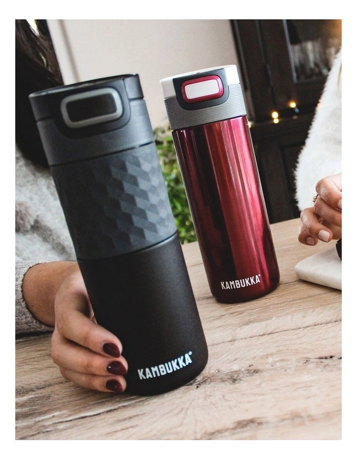 The Etna travel mug serves you a hot coffee when you struggle to stay awake at work, or an ice-cold drink after a tough workout. When youre on your way from one activity to the next, it will not only keep your drink hot for 5 hours (300 ml) or 9 hours (500 ml) and cold for 11 hours (300 ml) or 18 hours (500 ml), but also prevent it from leaking.