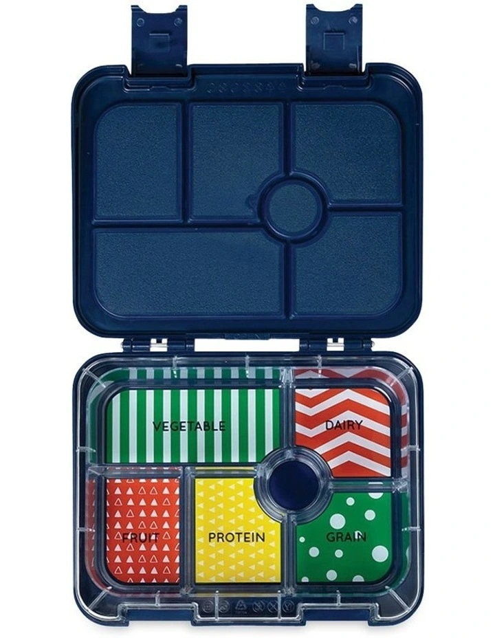 A clever design offers 6 compartments in a handy inner tray that can be removed from the outer box and popped in the dishwasher (top rack only). The lid is lined with a leak-proof silicone seal that covers each individual compartment.