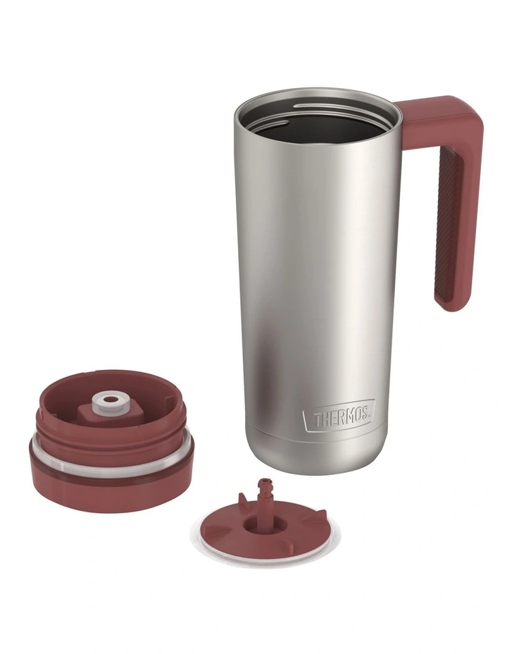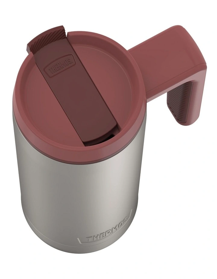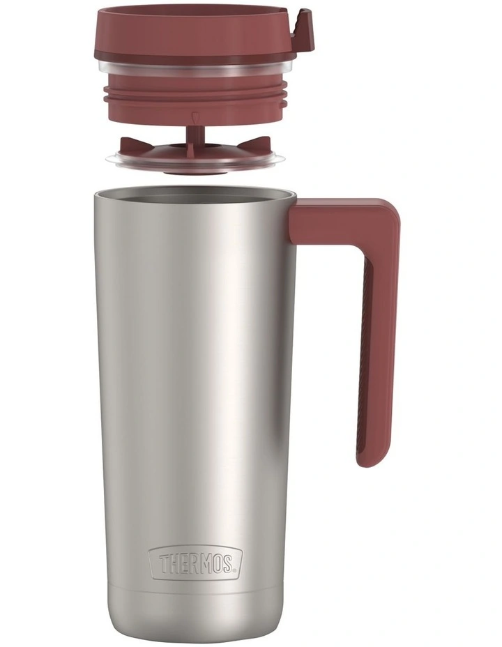 Thermos vacuum insulation technology for maximum temperature retention, keeps hot up to 5 hours or cold up to 14 hours.Β Durable stainless steel interior & exterior.Β Cool to touch with hot liquids, sweat proof with cold.Β Slide Lock Lid is simple & easy to use.Β Leak Resistant Plunger Lid system easily disassembles for thorough cleaning.Β Will fit most vehicle cup holders.